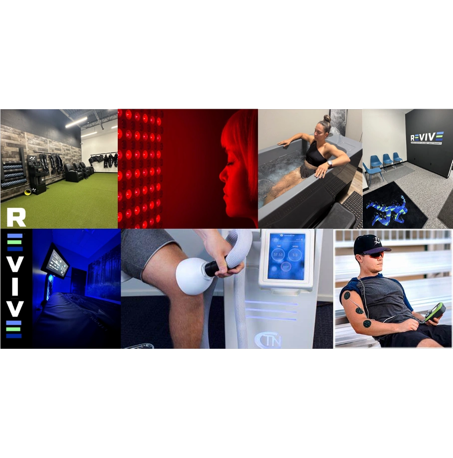 Find affordable red light, cold plunge, heated jet massage, acute cryotherapy, sauna, Normatec compression and more at REVIVE